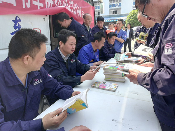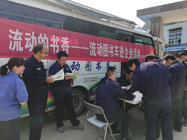 2018年4月28日上午,在“五一”勞動節來臨之際,為滿足企業員工朋友的閱讀需求,積極引導員工多讀書、讀好書,用****的書刊激勵員工自立、自強,營造良好的讀書氛圍,縣圖書館到我公司開展流動圖書車進企業活動,本次活動的主題是“書箱送春風,溫情送員工”,圖書館準備了大量的技術業務書籍,公司一線員工來到流動圖書車旁,爭相查閱技術資料,閱讀相關書籍,豐富了員工的精神生活。